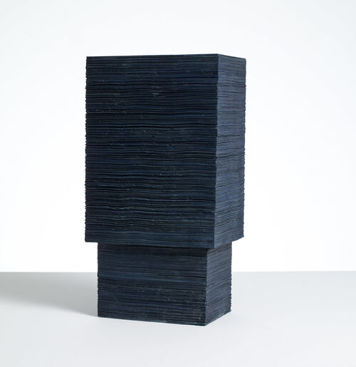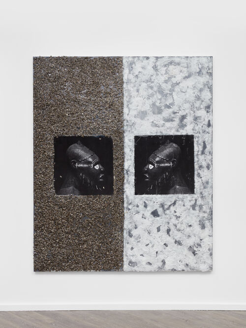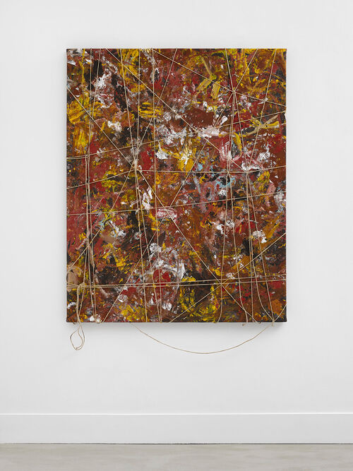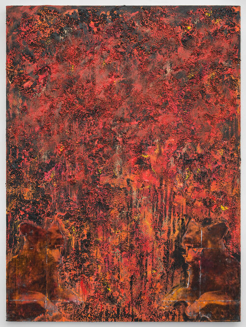 Reginald Sylvester II creates paintings that draw on sculpture, and sculptures that draw on painting. Using diverse materials, from rubber, tarpaulin, sticks, and string to oxidized and patinated metals, his work attains a rich textural quality that echoes Kiefer’s. Influenced by mid-20th-century Abstract Expressionism and Minimalism, his monumental sculptures and large-scale paintings have an imposing presence, exploring subjects such as spirituality, nuclear dystopias, authoritarianism, and the trauma of enslaved peoples.