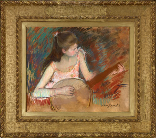 According to Old Masters specialist Mercè Valderrey Art and the Athena Art Foundation, the participation of women artists at this year’s edition of TEFAF has “nearly doubled” compared to 2024: More than 500 works by women artists are exhibited by almost 100 booths at the fair. While this is still less than half of the exhibitors at the fair, it does nonetheless yield some exceptional highlights. Among them is this exceptional pastel-on-board work by American Impressionist Mary Cassatt, Girl with a Banjo (1894).