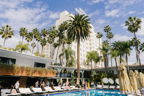 Indeed, on February 19th, at 11 a.m., the fair’s seventh edition attracted an eager crowd to the Hollywood Roosevelt Hotel for its VIP day. This year’s edition of the fair hosts more than 60 exhibitors within the poolside cabanas surrounding the hotel’s iconic David Hockney–designed pool and the suites on the 11th and 12th floors. And, while the hotel felt less crowded than last year’s iteration, a steady stream of fairgoers continued to meander in to enjoy cocktails by the pool and browse the galleries throughout the day. Among the celebrity attendees were generational heartthrobs—from pop star Troye Sivan to the timeless Henry Winkler (Fonzie from Happy Days)—who made their way through the booths. Julia Fox was also spotted engaging with several gallerists around the cabanas.