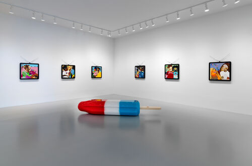 Hoffman quickly developed a reputation for showcasing artists at the cutting edge. “I’m very good at finding younger artists,” she said. The list of figures shown by her gallery backs this up: Key names include Weems in 1993; Adam Pendleton in one of his first solo exhibitions in 2005; and Derrick Adams in 2014. In 2015, she mounted a solo show for Chicago-born painter Nathaniel Mary Quinn, “Back and Forth,” after a friend urged her to visit his studio. “I don’t show anything that I don’t want,” she said simply. In recent years, Hoffman hasn’t slowed down. In 2024, the gallery presented six shows, featuring artists such as Jacob Hashimoto and Judy Ledgerwood.