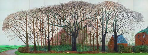 “I’d go and sit there for three hours at a time just looking up at the branches, lying down practically so I looked up,” Hockney once explained of the work, which was the fixture of the Royal Academy of London’s 2007 “Summer Exhibition,” where it spanned the length of the gallery’s walls. “It needed a hell of a lot of planning, but we did it rather quickly. The deadline wasn’t the “Summer Exhibition.” The deadline was the arrival of spring.”