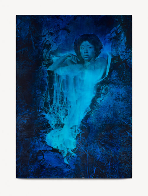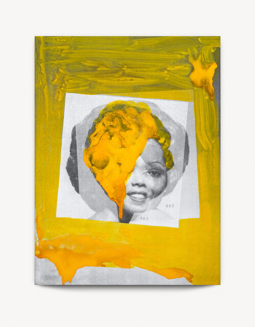 Many are portraits, whose subjects stare—almost accusingly—at the viewer from a nebulous wash of cobalt blue or gray. Other faces share the canvas with collaged photography or magazine cut-outs. Simpson first exhibited her paintings at the 2015 Venice Biennale; “Source Notes” takes some of her paintings from that debut. Other works are from her ongoing “Special Characters” series, which uses found images—often the faces of Black women taken from beauty or wig advertisements in Ebony magazine—and steeps them in bright colors, reminding us of the repetitive, capitalistic imagery we consume.